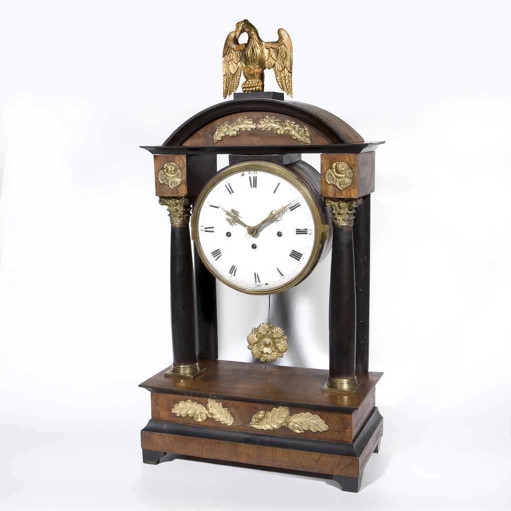 Architectural case. Eagle, dial partially bumped, two fittings missing, movement defective.