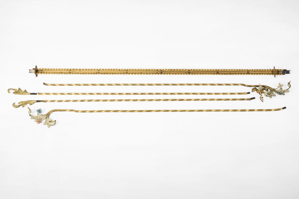 Iron gilt, partly coloured. L main bar 235 cm, companion bars 217 and 207 cm respectively.