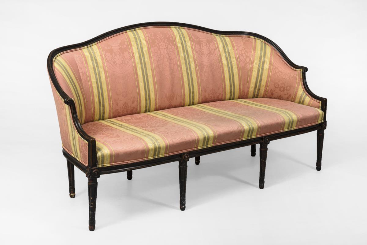 Hardwood ebonized. Approx. 93 x 175 x 68 cm, seat height approx. 42 cm.