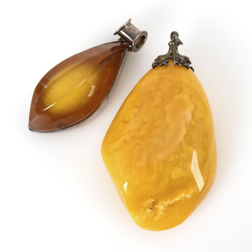 2 large amber pendants.