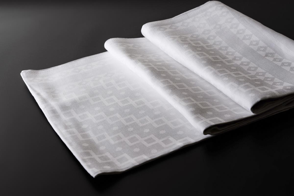Strong linen with strict geometric pattern in peasant style. Small monogram BM.