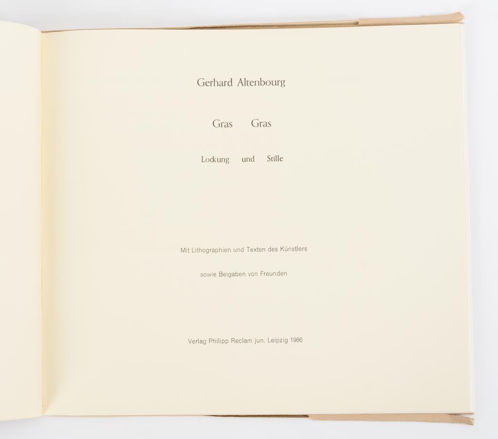 Gebundenes Heft mit 8 Lithografien und Texten anlässlich des 60. Geburtstages des Künstlers, als Beigabe Texte von Erich Arendt, Werner Schmidt, Lothar Lang und Roland Jäger, herausgegeben von Hans Marquardt, Verlag Philipp Reclam jun. Leipzig 1986, Einband betitelt, im Schuber. Schuber mit Defekten.