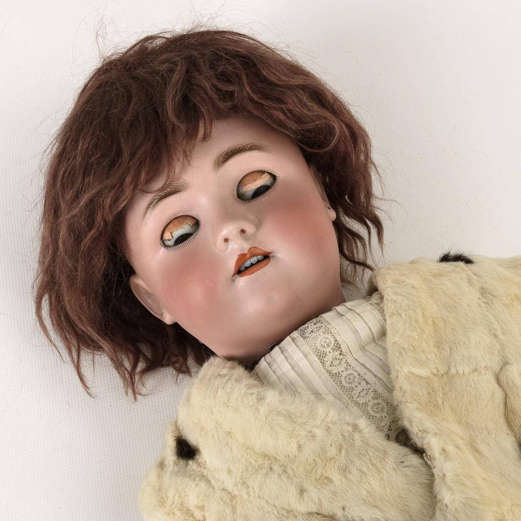 Large doll with fur collar. Heinrich Handwerck.