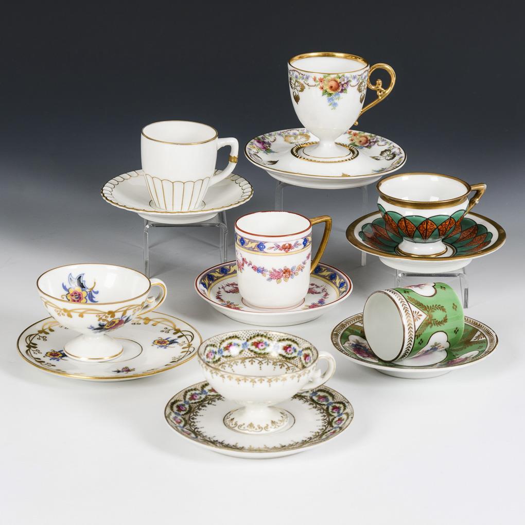 Variously marked, 20th c. Partly polychrome painted, partly coloured decoration, all gilt.