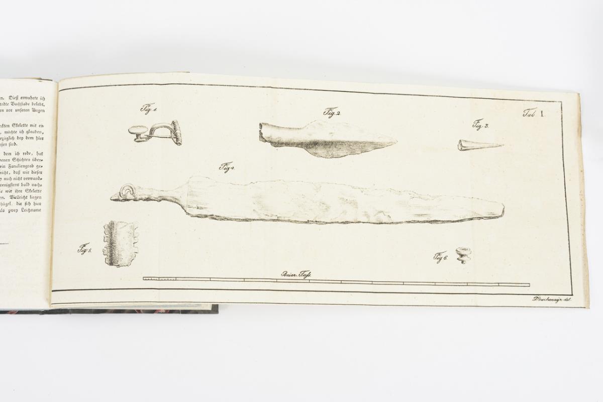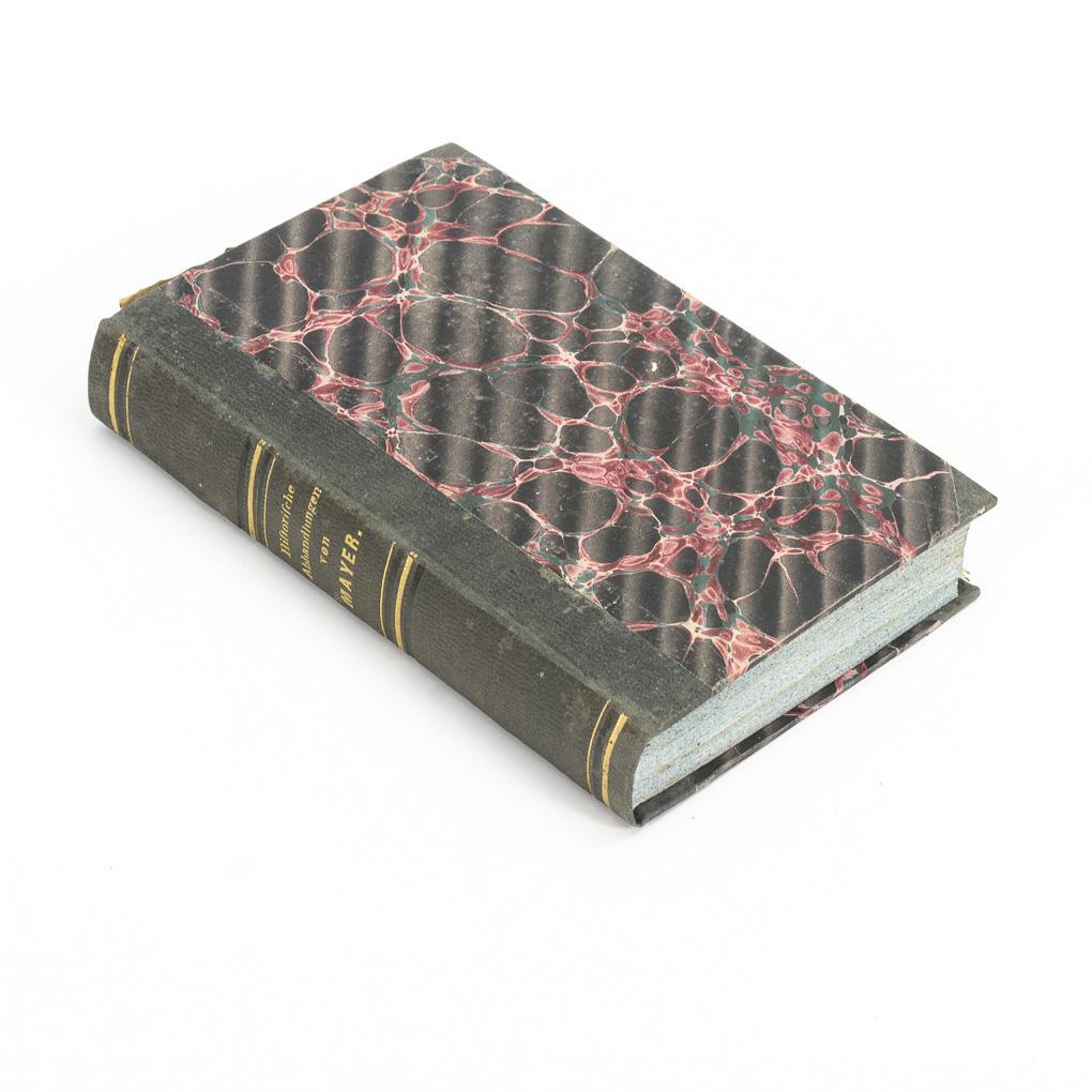 "Treatise on some sites of ancient Roman coins in the Kingdom of Bavaria", 102 pp. / "Treatise on some ancient German burial mounds in the Principality of Eichstätt," 96 pages, 4 plates. / "A few words about a few Druid trees in the Kingdom of Bavaria," 53 pages and 1 plate. / "Treatise on the burial mound of an ancient German druid in the Principality of Eichstätt", 48 pages and a plate. Probably younger rebound.