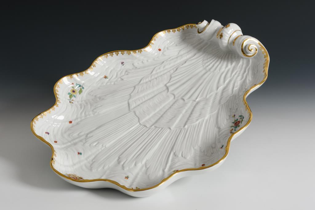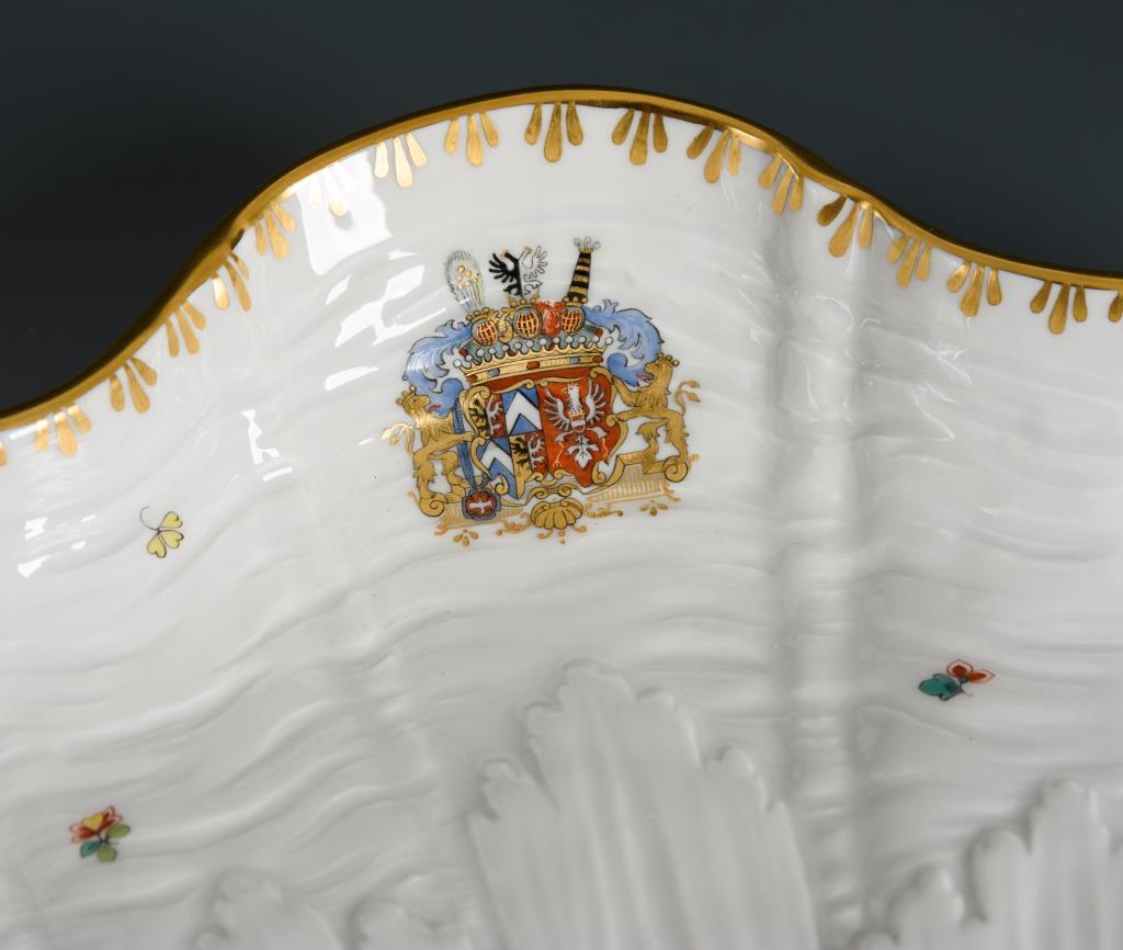 Große Muschelplatte mit dem Allianzwappen des Grafen von Brühl.