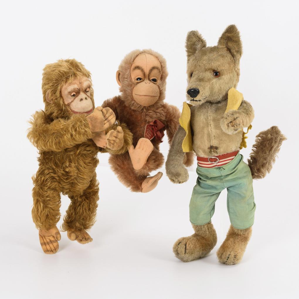 3 stuffed animals. 2x Schuco "bigo bello".