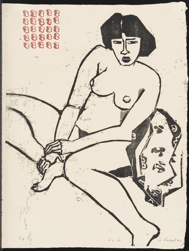 Color woodcut on laid paper. Pencil signature, inscribed "G. z. Dr." [19]91. Artist's copy "e.a.", blind stamp "Matthieu Litho Switzerland".