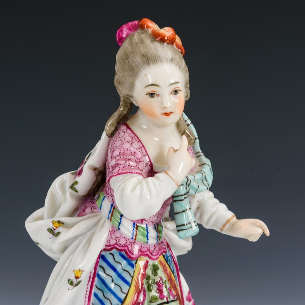 Auf einem Natursockel stehendes, als Sultanin verkleidetes Mädchen. Linker Zeigefinger restauriert.