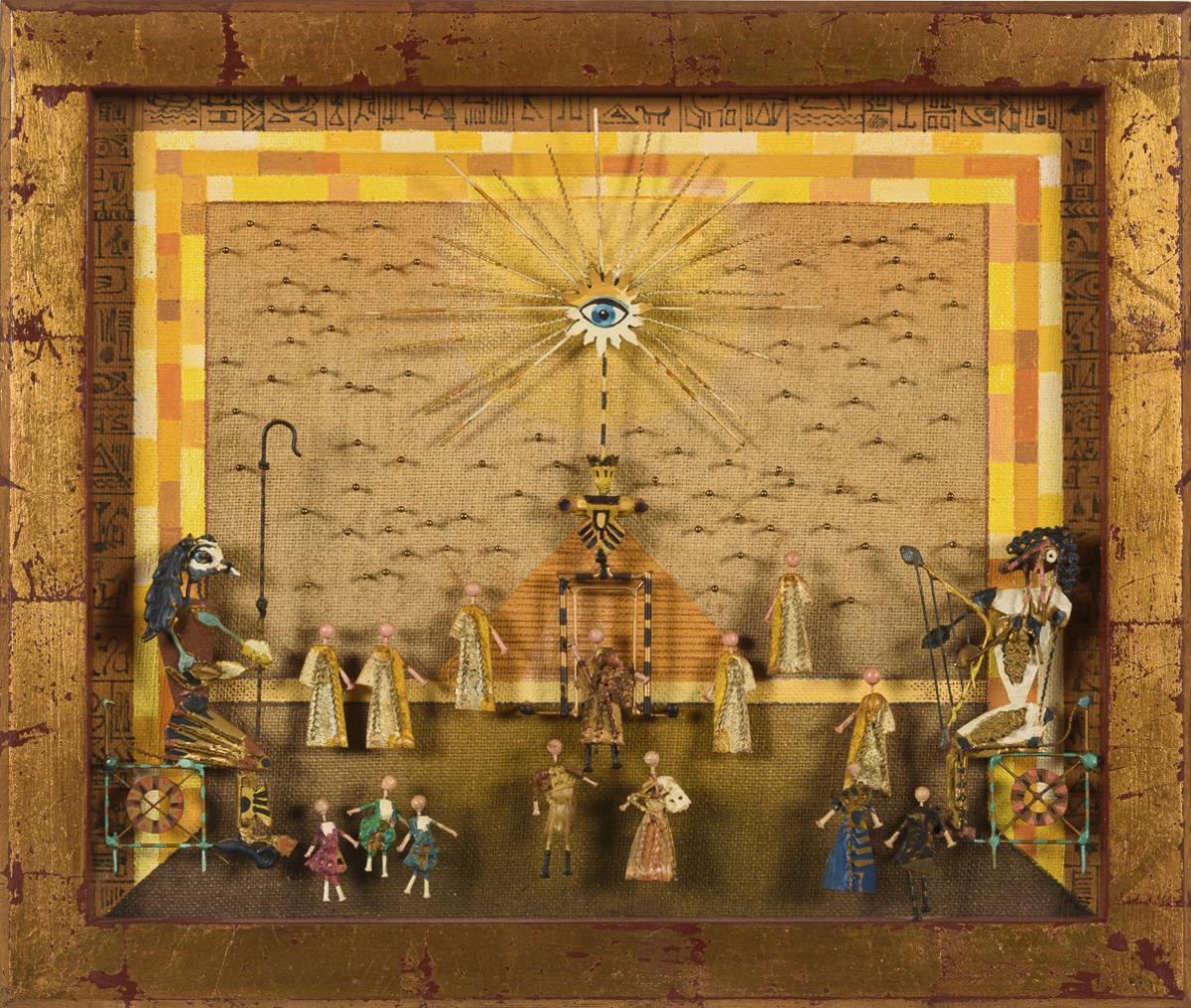 Mixed technique with figurative metal applications. Unsigned, signed/titled on verso. Dated on verso: (19)99.