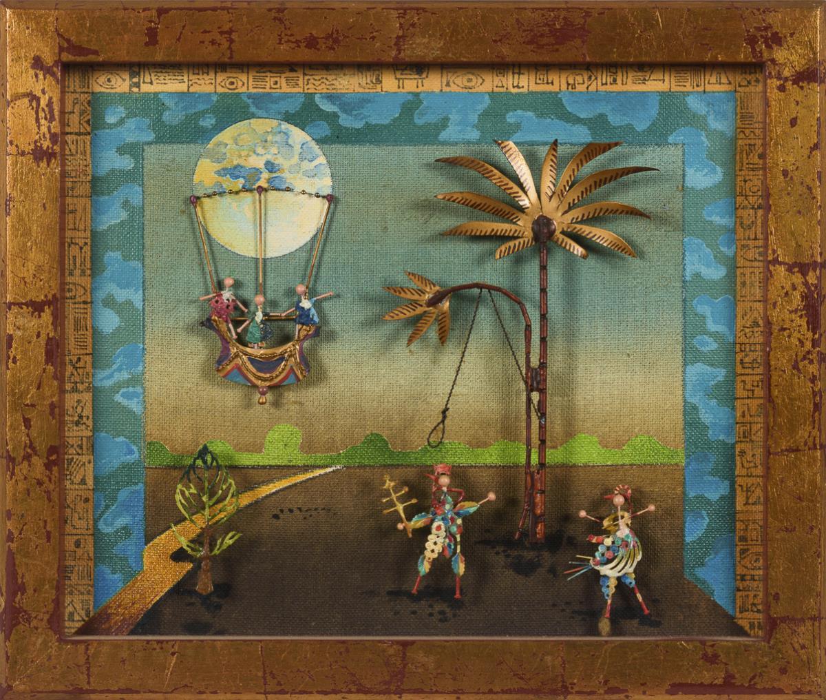 Mixed technique with figurative metal applications. Unsigned, signed/titled on verso.