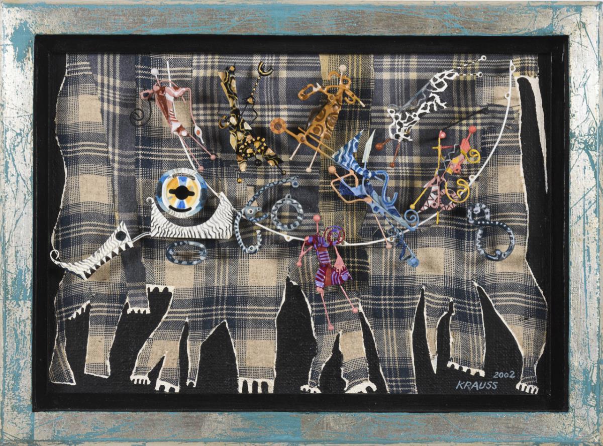 Mixed media with figurative metal applications. Signed lower right, titled on verso. Dated: 2002.