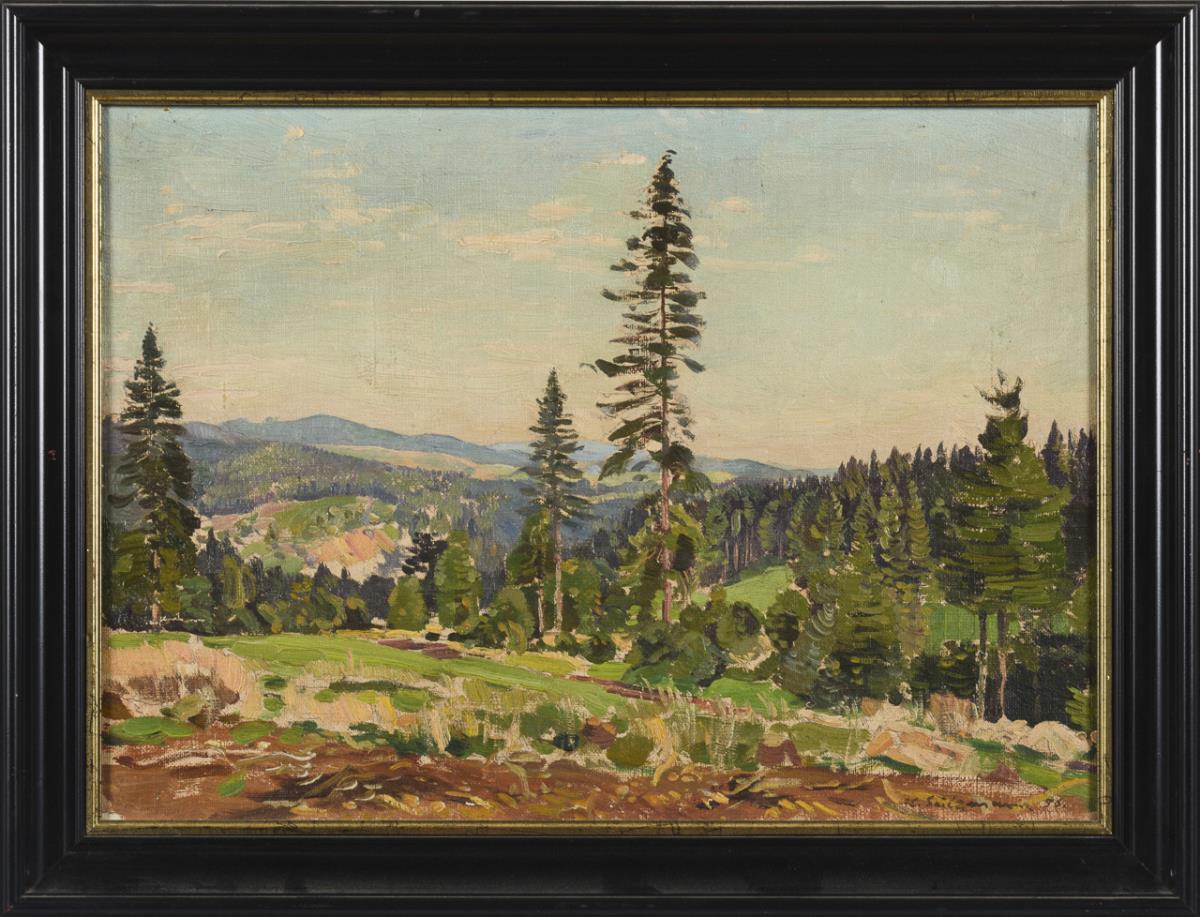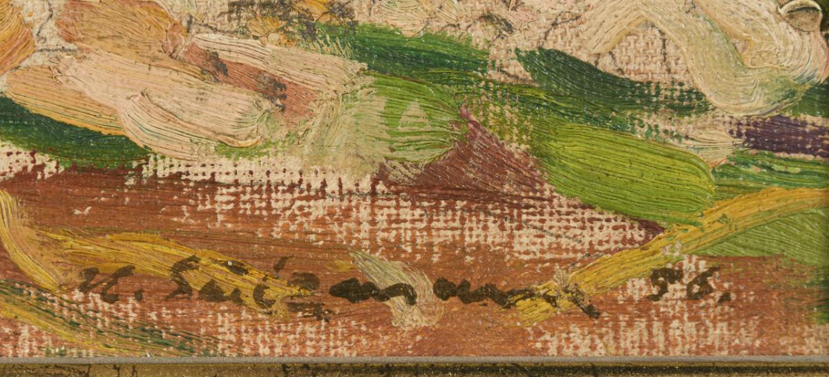Oil/canvas/cardboard. Signed lower right, signed on verso with place name Schmalkalden as well as further landscape. Dated: (19)56.