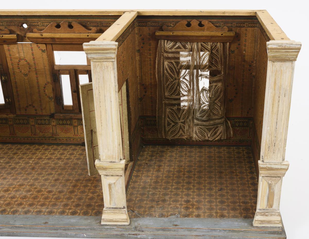 Wood, painted cream, inside old wallpapered. 28 x 65 x 26 cm.
