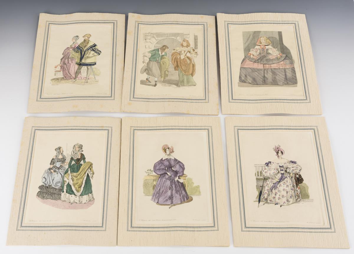 21 of 23 depictions of women's fashion after illustrations of various fashion journals, sheet: 28.5 x 22 cm each, each in passe-partout, drawn by Jutta Wagner, engraved by P. Simon. Each minimally foxed, cardboard with traces of use.