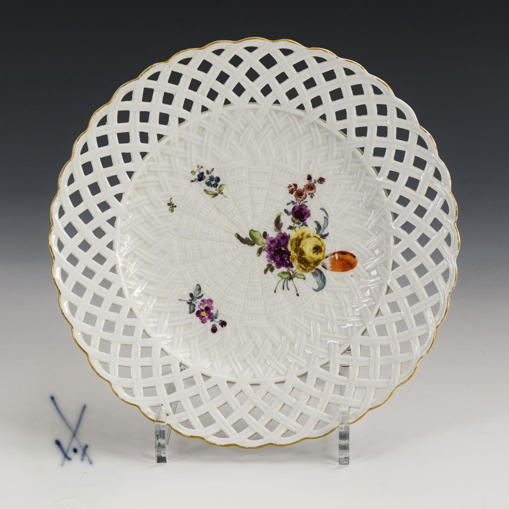 Baroque dessert plate with floral painting. Meissen.