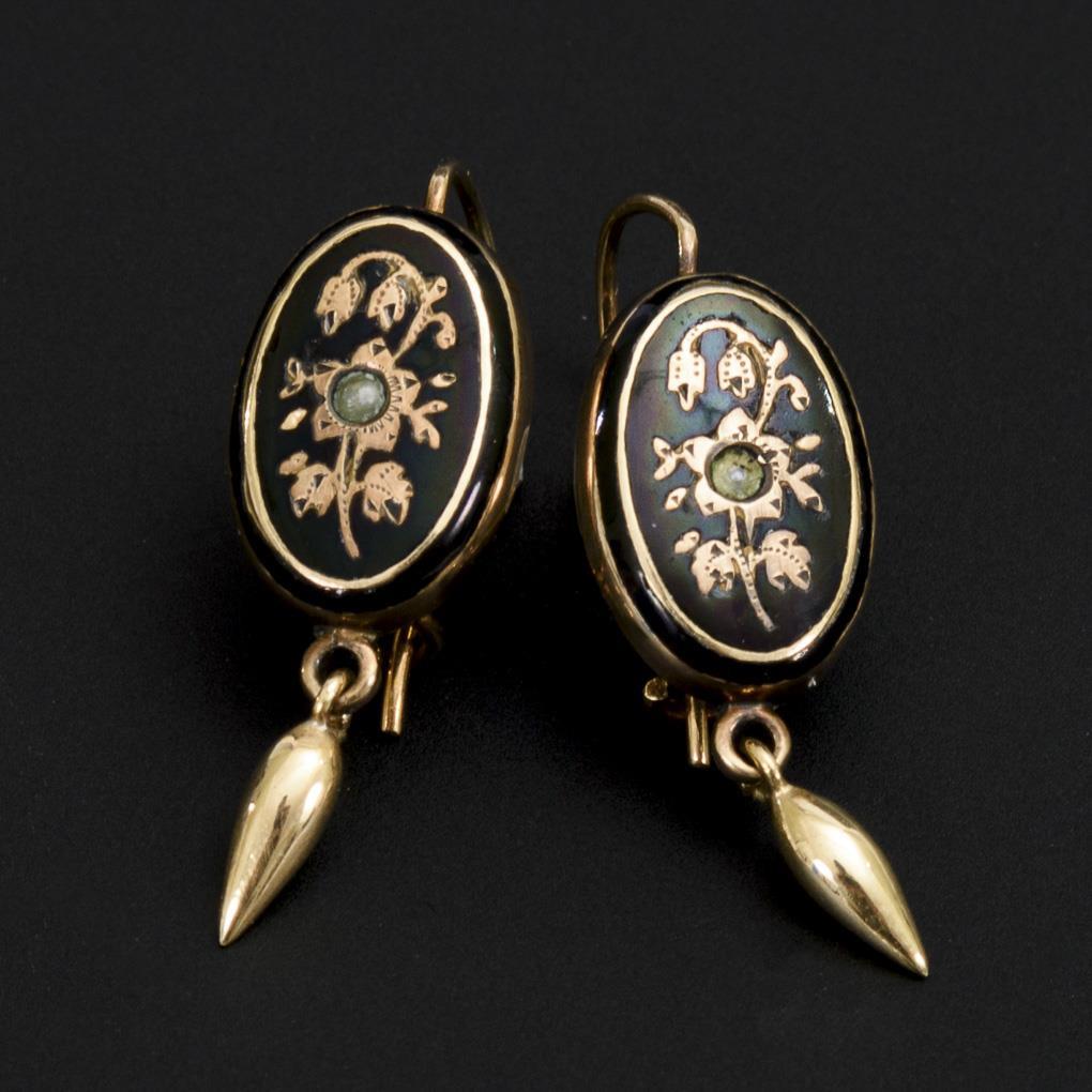 Black enameled brisure with small bead and suspension. Suspension with hook safety.