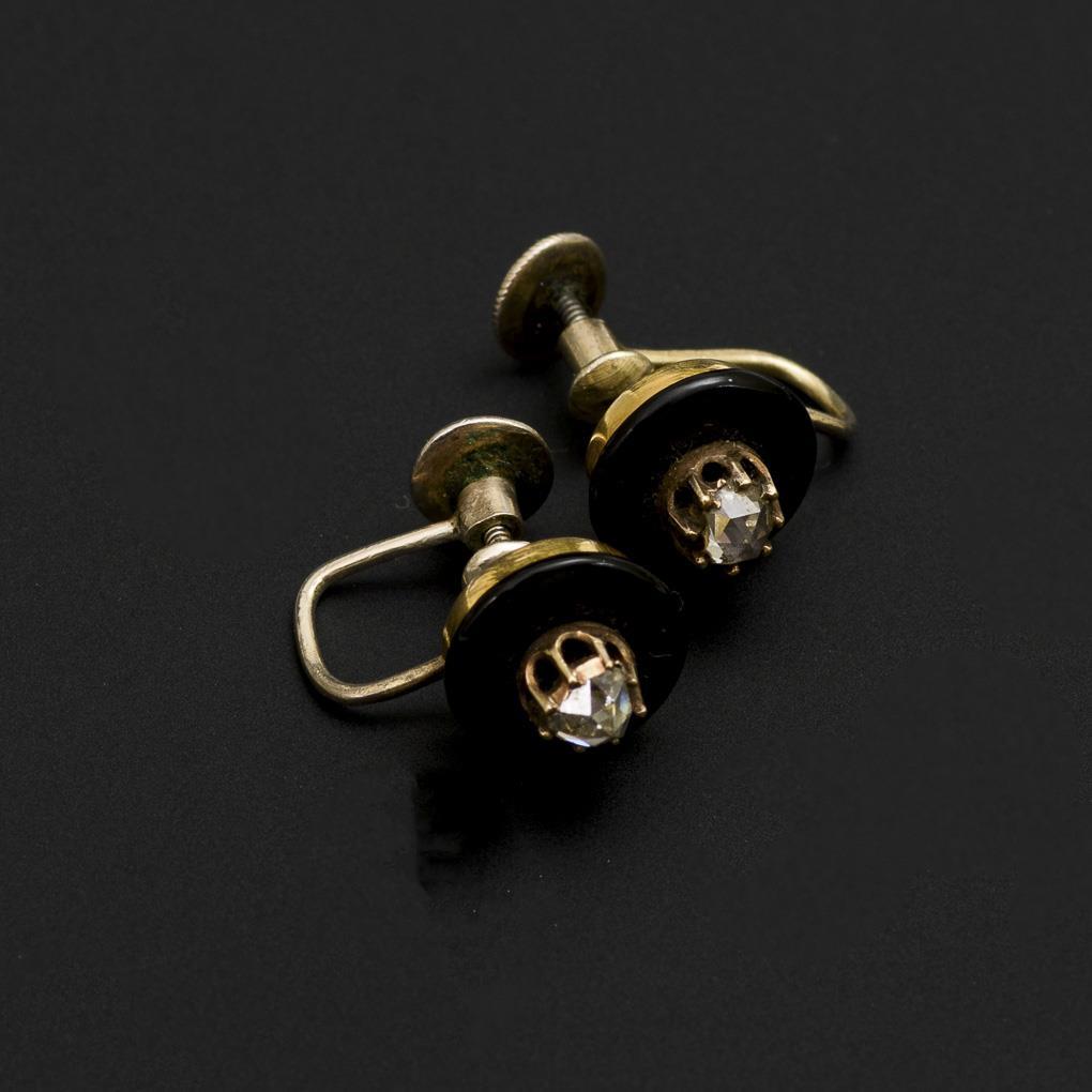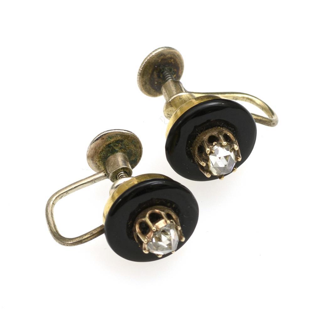 Onyx discs with chaton set diamond roses on screw mechanism.
