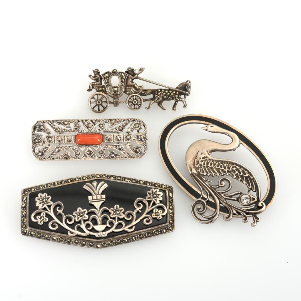 4 verschiedene Broschen mit Markasiten