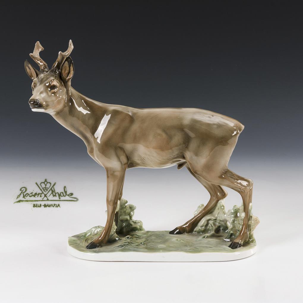 On a natural base standing roebuck. Has been restored.