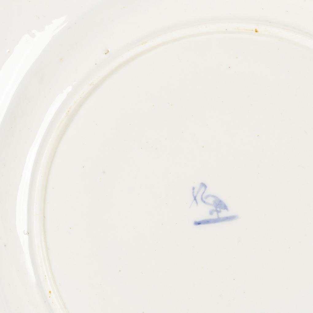 Polychrome painted, gold decorated. Ø 25 cm.
