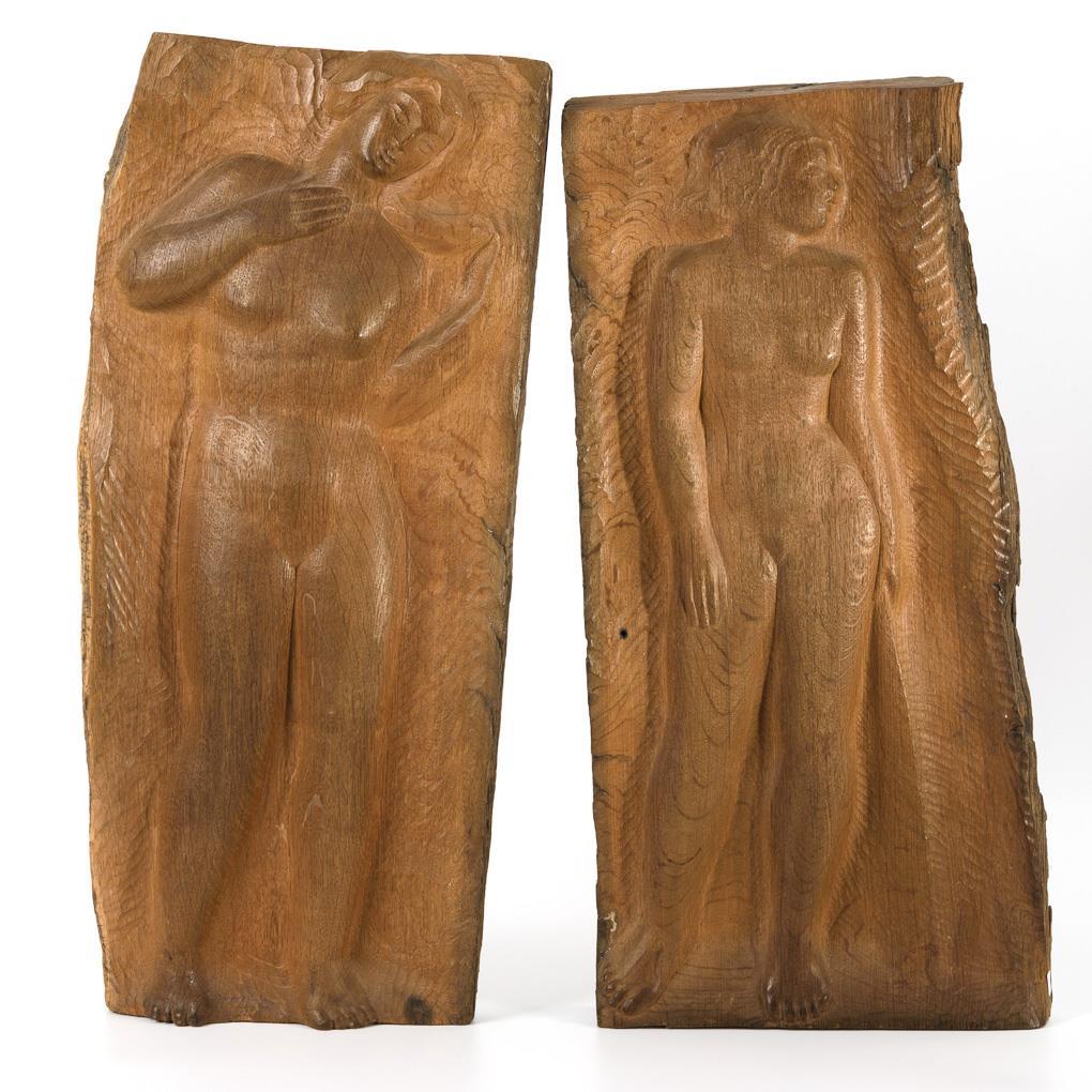 Oak in second use. 1950s. Unsigned. Approximately 65 x 30 x 6 cm each.