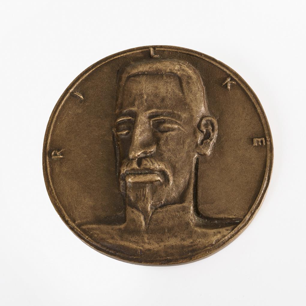Stylized relief portrait of the poet with name legend, reverse view of Duino Castle on the coast near Trieste. Minimally rubbed.