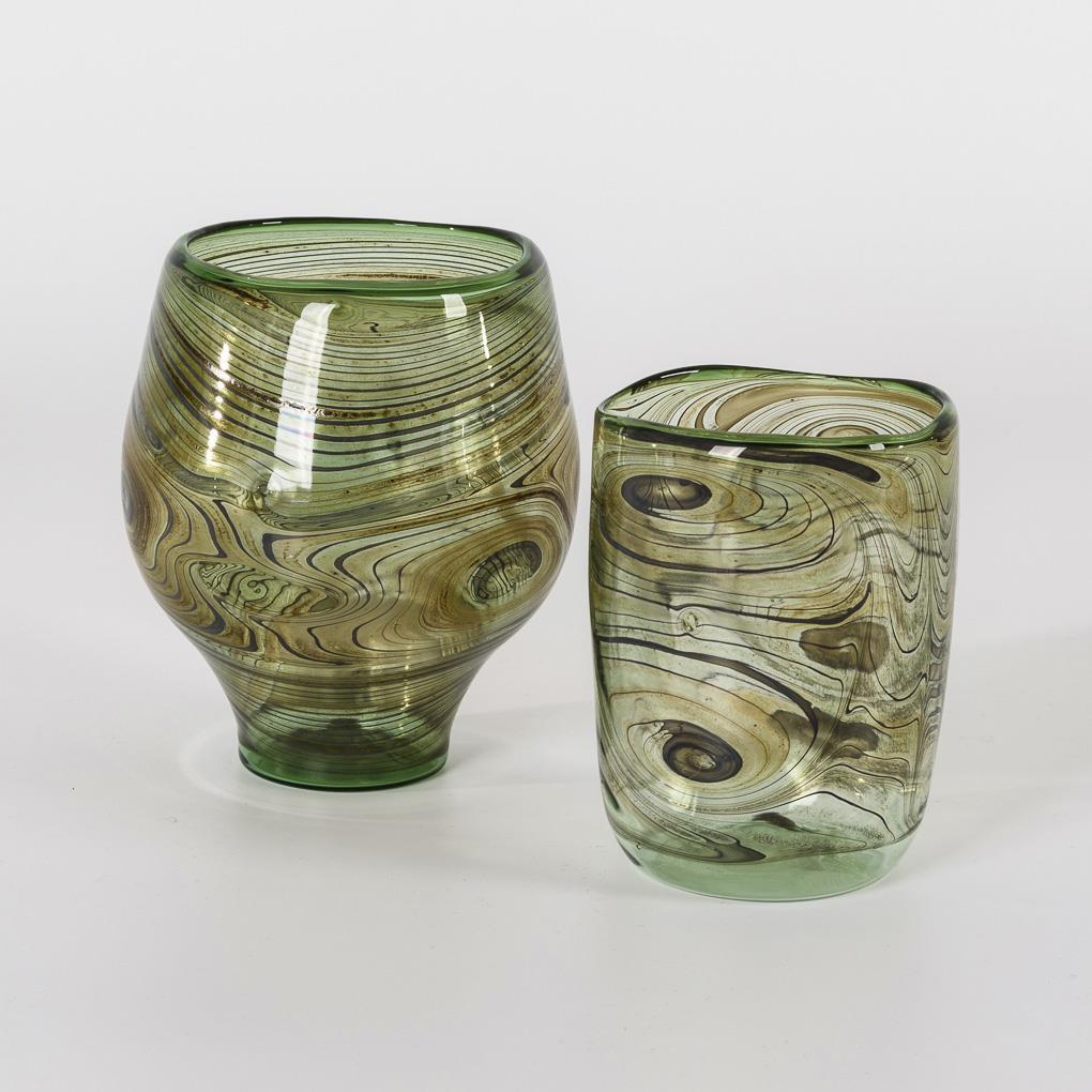 2 artist glass vases.
