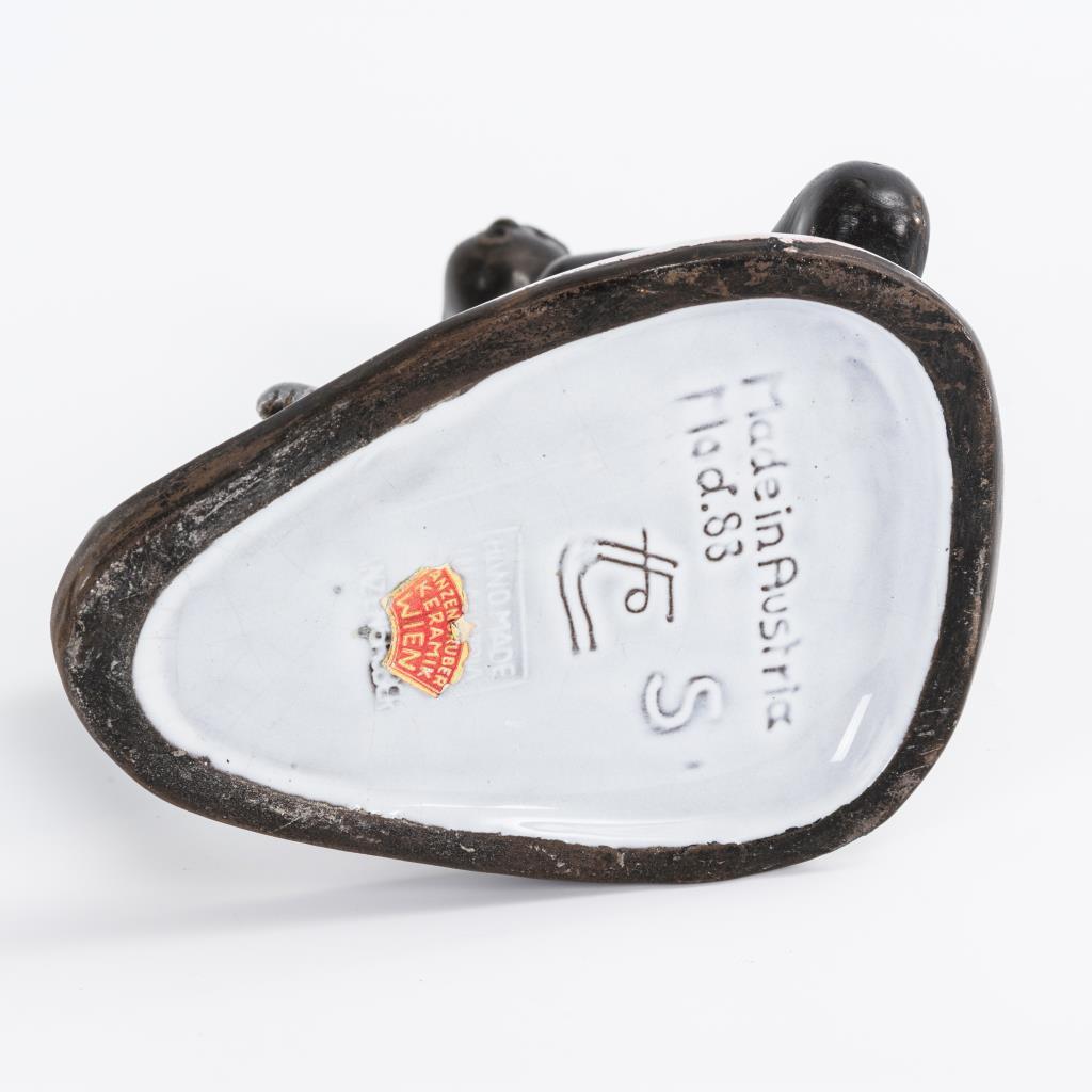 Brauner Scherben, schwarz und weiß glasiert.H 18,5 cm.