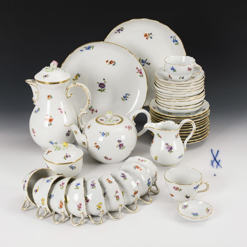 Coffee service with scattered floral painting. Meissen.