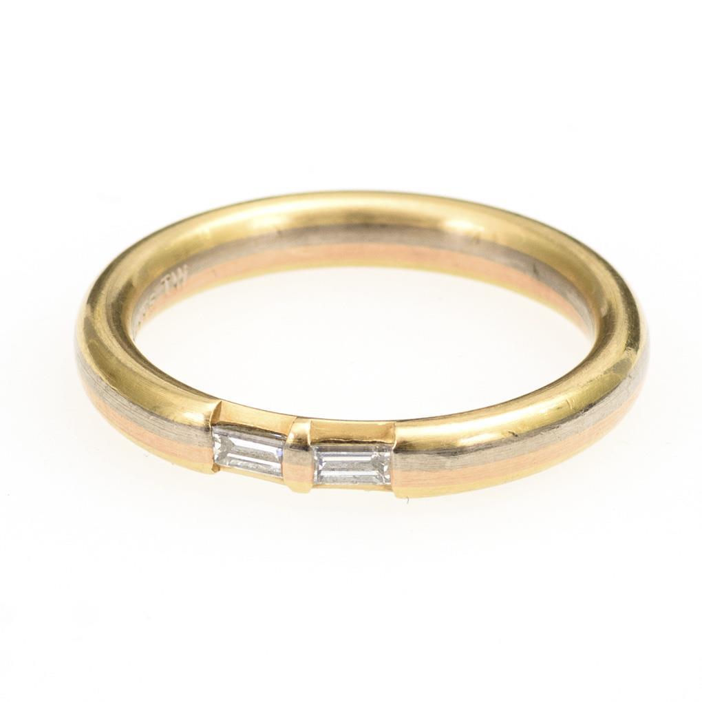 Slim ring with 2 diamond baguettes.
