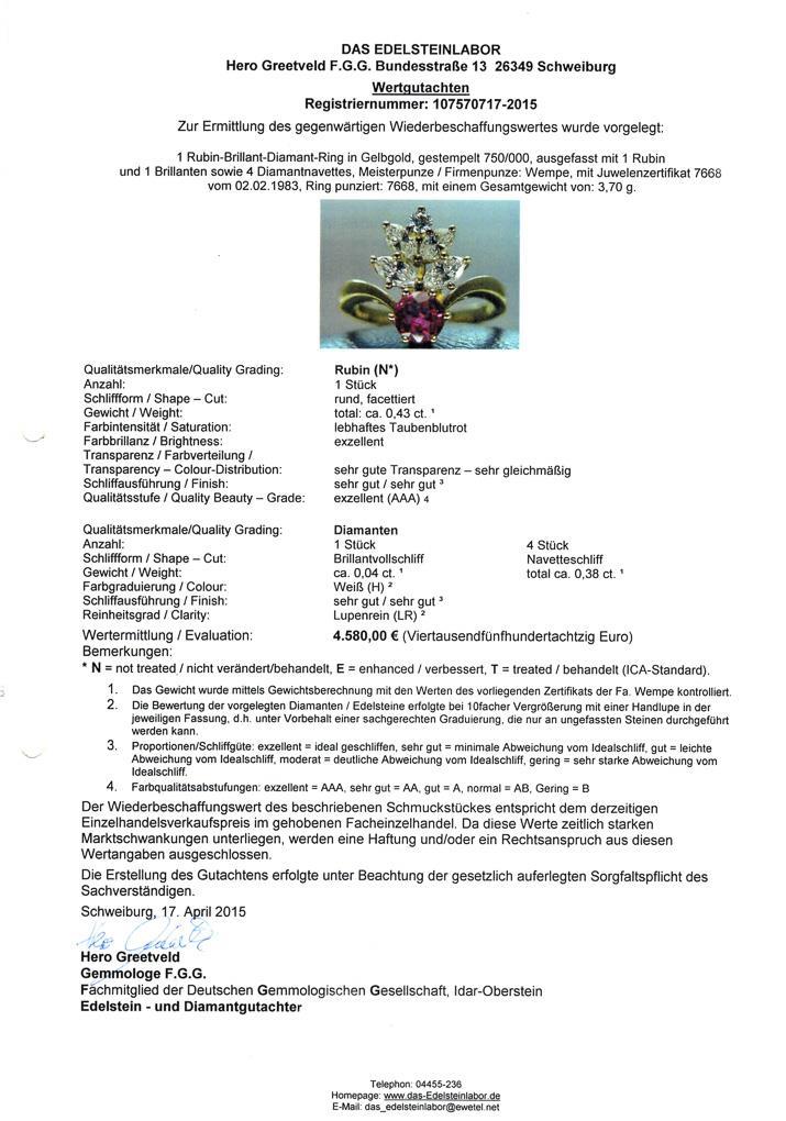 Value according to available appraisal of 2015: 4,580.00 euros. Jewel certificate WEMPE from 1983.