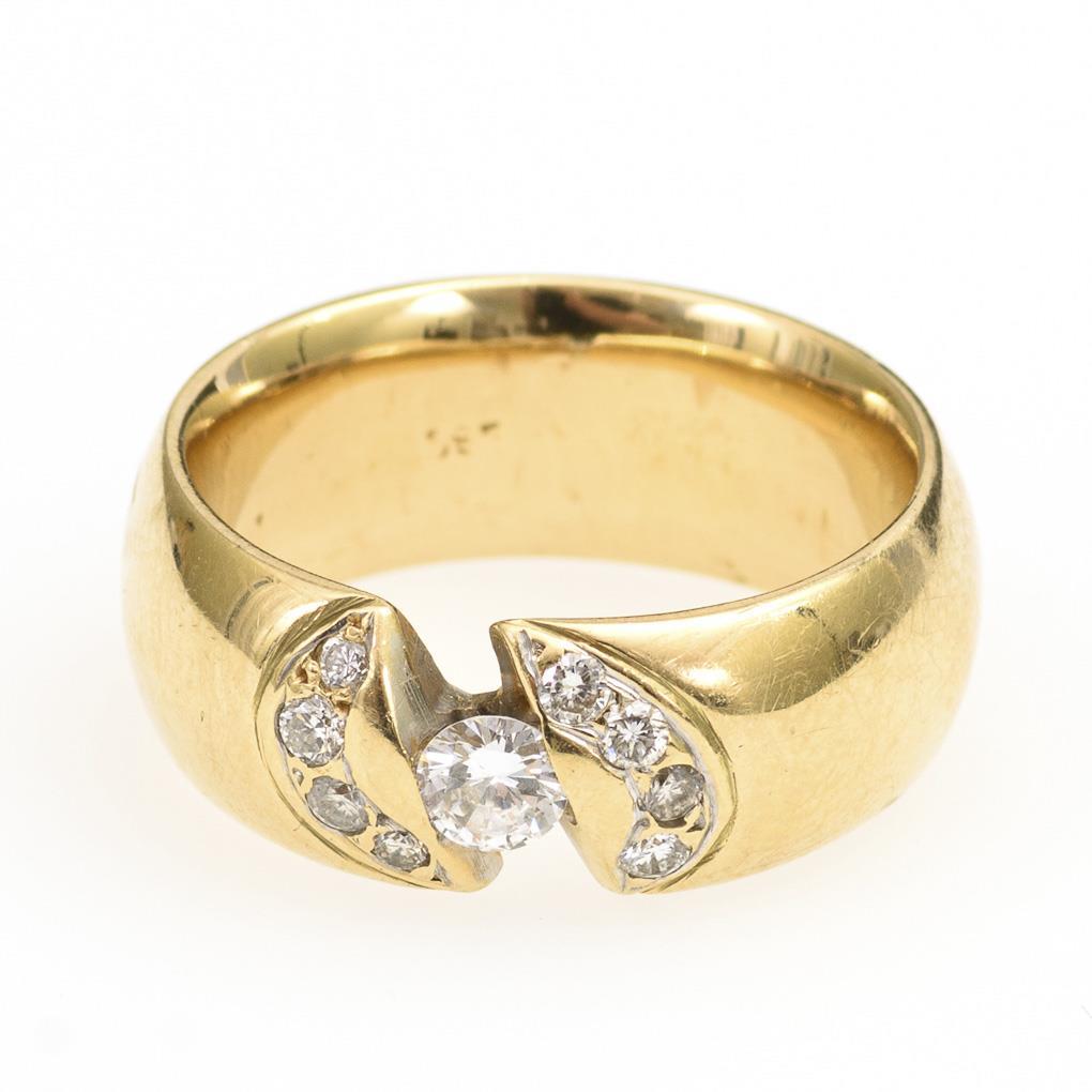 Yellow gold 585. Ring size 56. Diamonds together approx. 0.38 ct. 13.3 g.