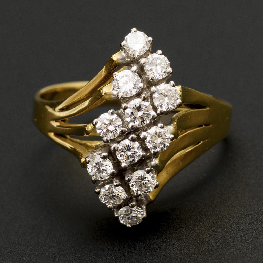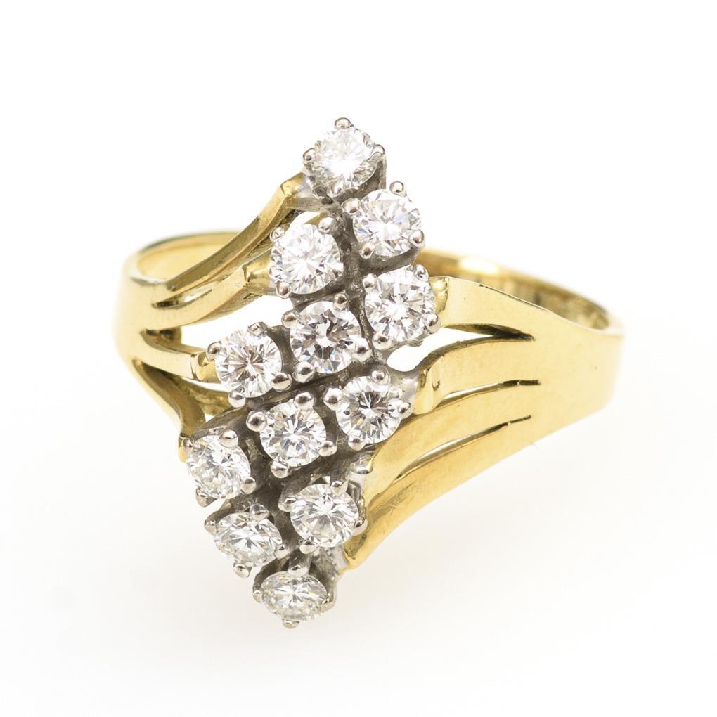 Yellow gold / white gold 750 stamped. Ring size 56. diamonds together approx. 0.72 ct/H-I/sv-si. 5,0 g.