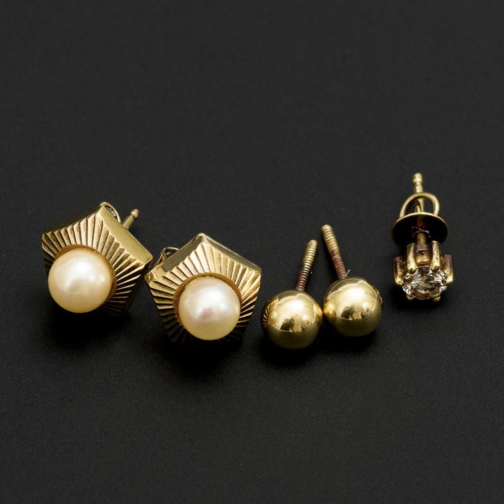 2 pairs of stud earrings and 1 diamond stud earrings.