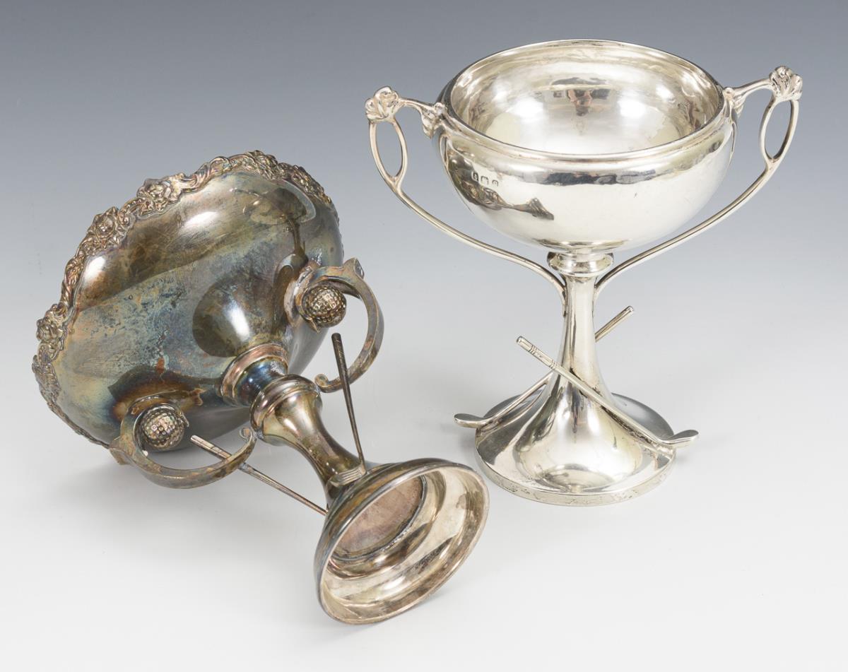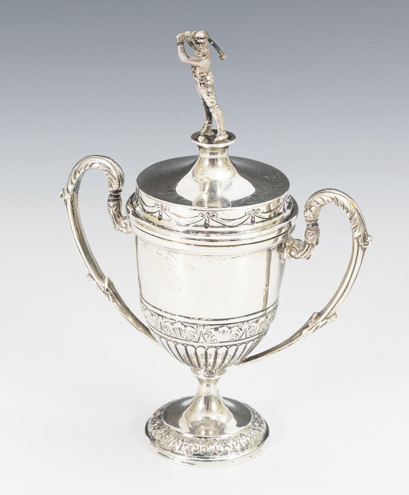 2 bowl and 1 small lidded goblet, each with golf symbols. Without engravings. 1x slightly dented.