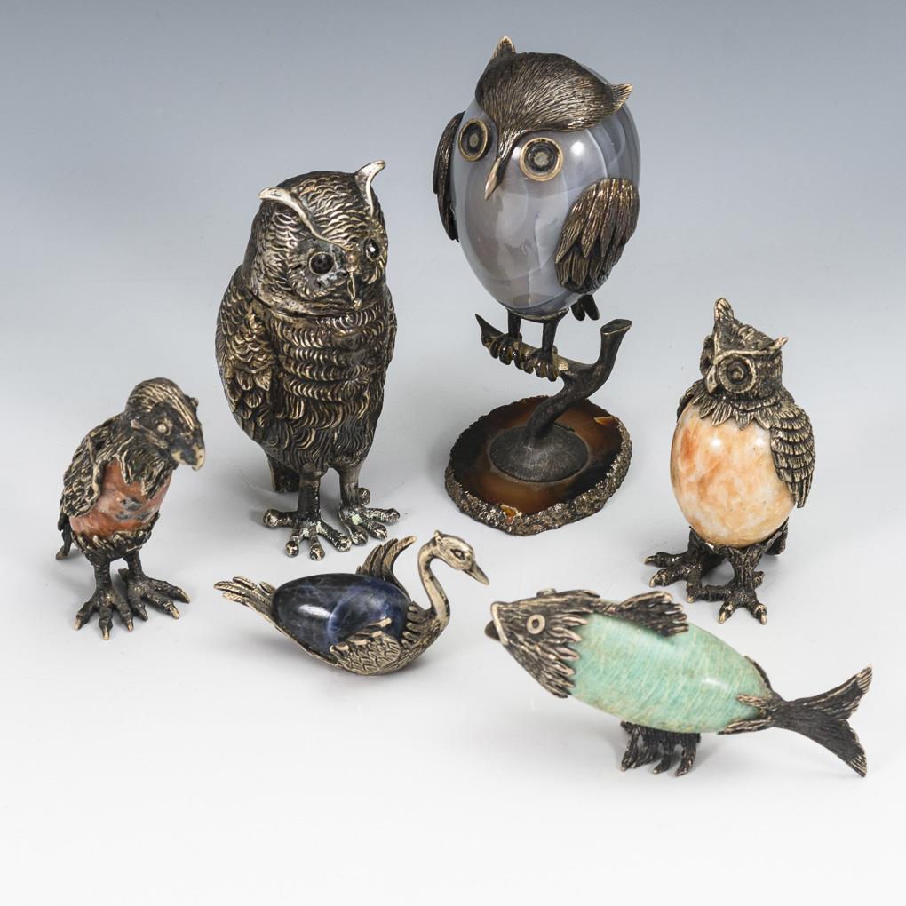 6 animal figurines with semi-precious stones.