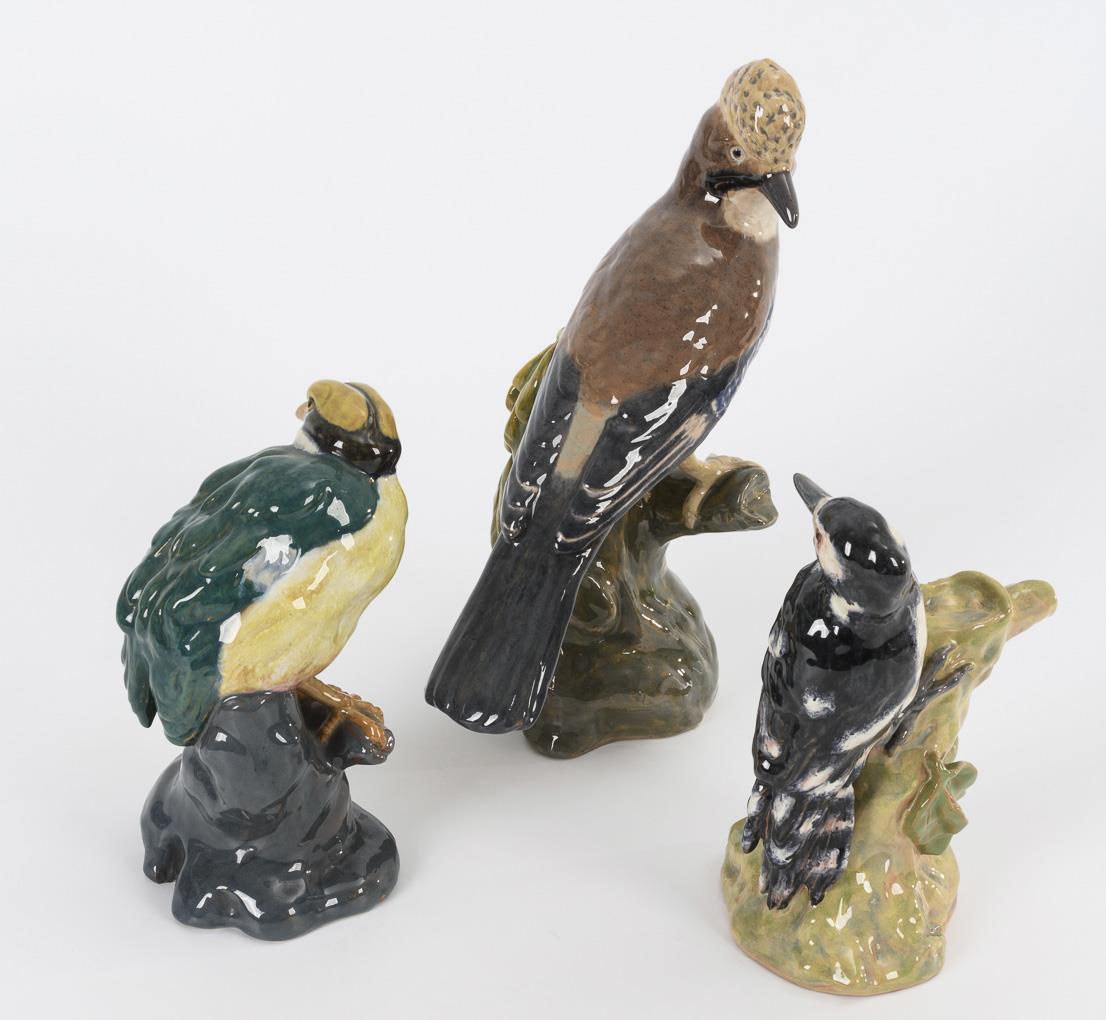 Jay: model no. 1555, h 30.5 cm. Woodpecker: model no. 1551, H 21 cm, Pitta: model no. 1532, H 19 cm.