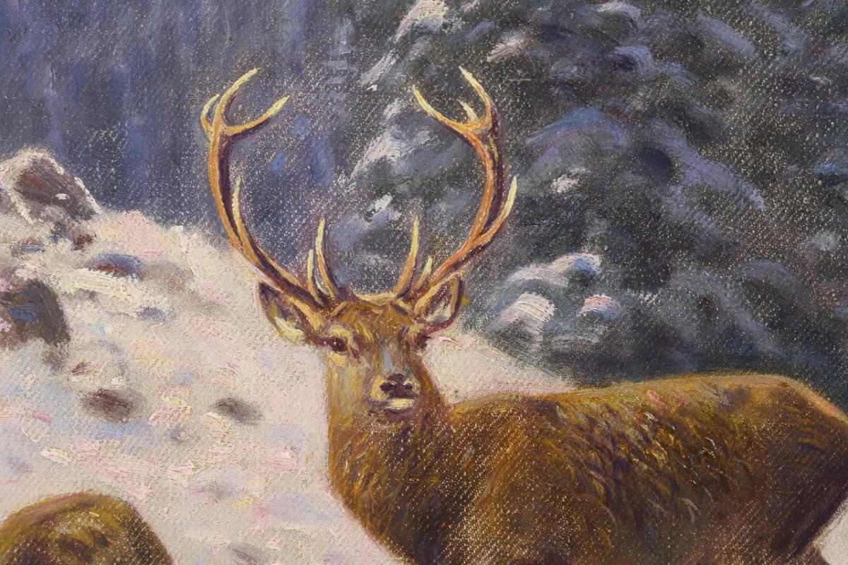 Red deer in the snowy mountains
