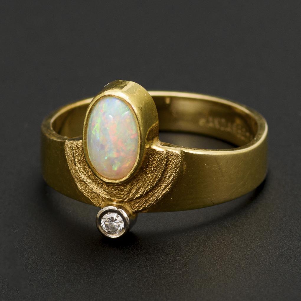Designer ring with opal and diamond.