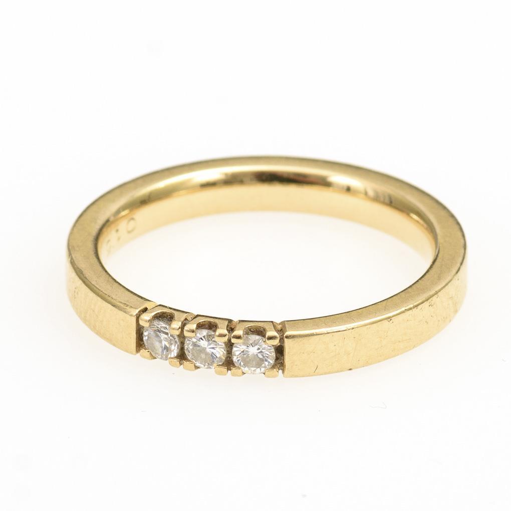 Yellow gold 585 stamped. Ring size 58. diamonds together 0.15 ct/TW/vsi. 5,1 g.