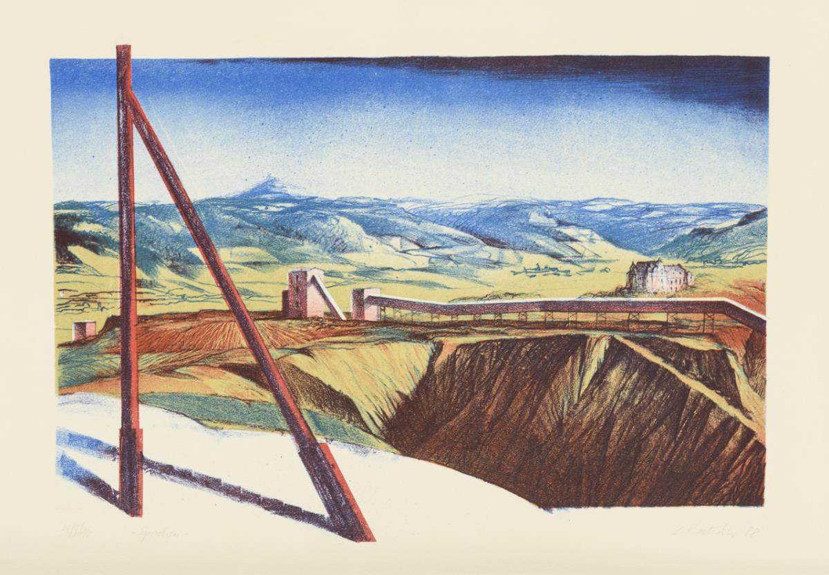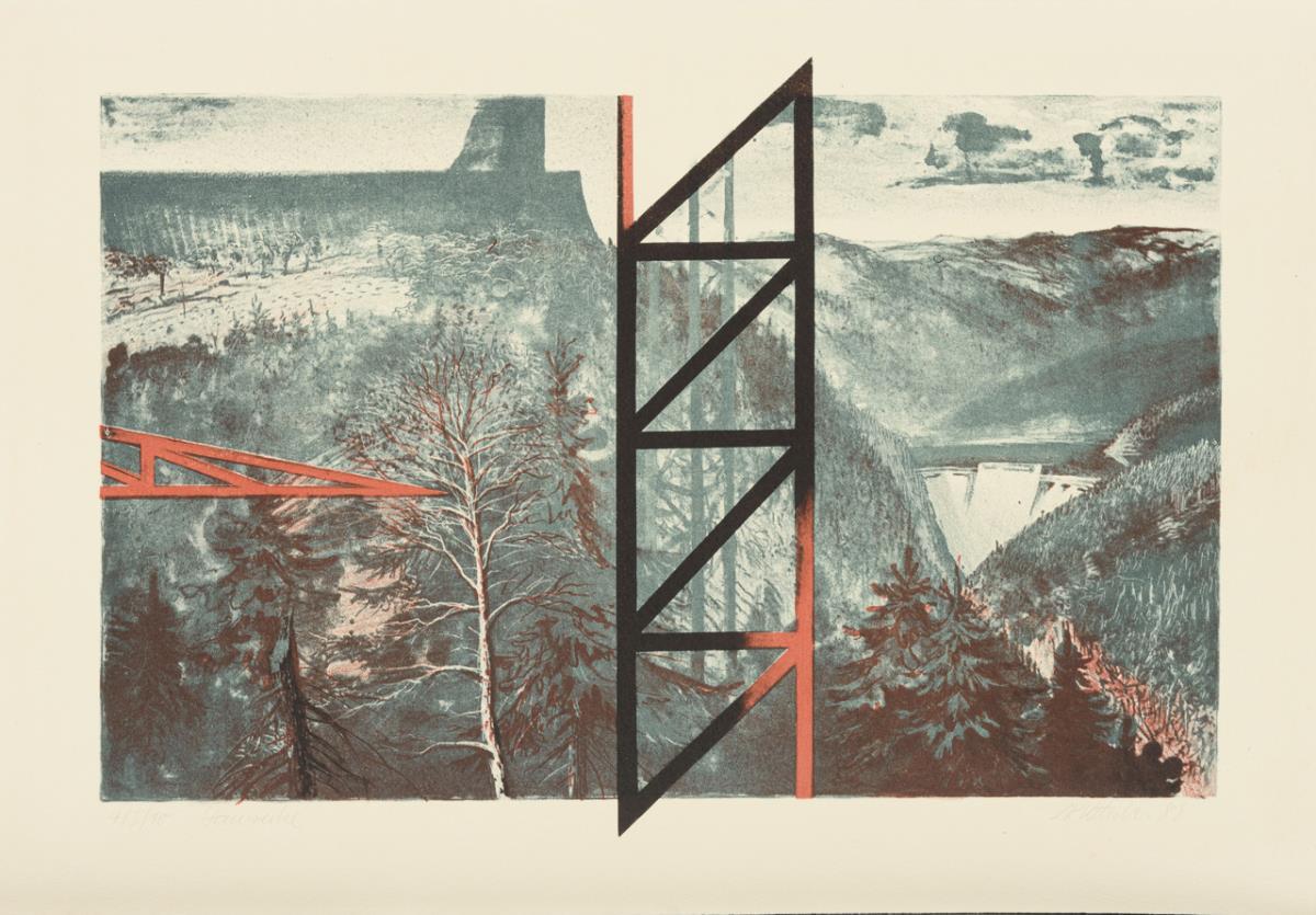 Complete portfolio with 5 works: "Organism", "Epochs", "Barrage Works", "Culture" and "Leisure", title folder with typographic text; commissioned by VEB Maxhütte in the action "Max needs art" in 1987/88.