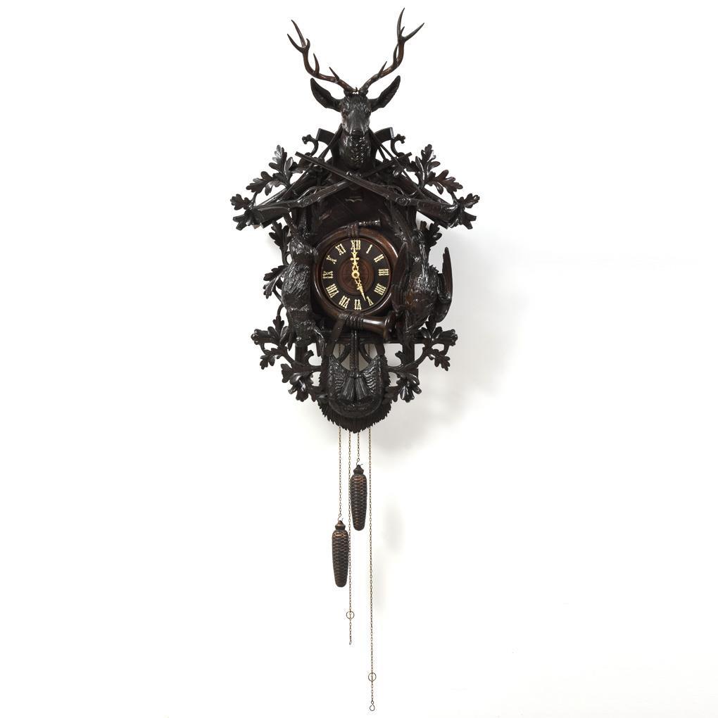 Large Black Forest cuckoo clock with hunting trophy jewelry. Philipp Haas & Sons, St. Georgen.