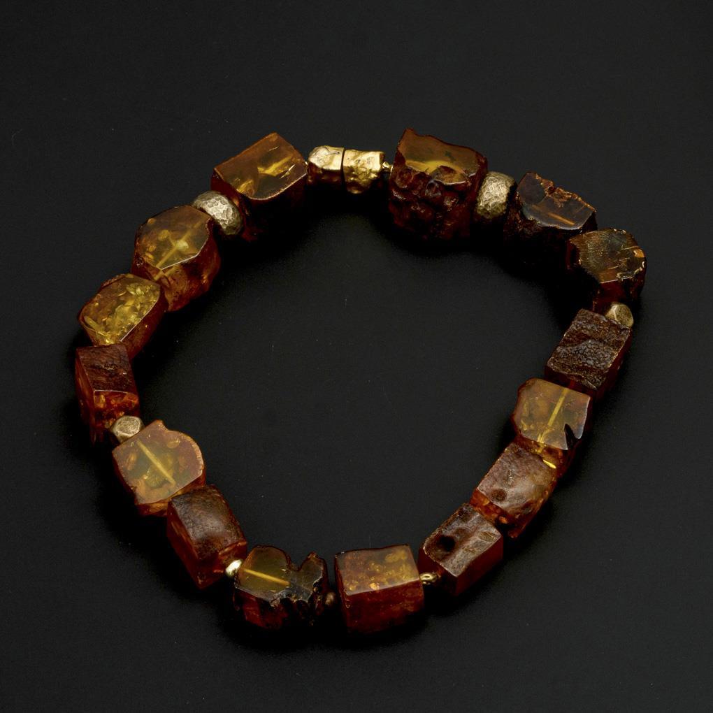 Silver clasp tested, gold plated. 51 cm. Ambers approx. 2.5 x 2 x 2.3 cm. 178 g.