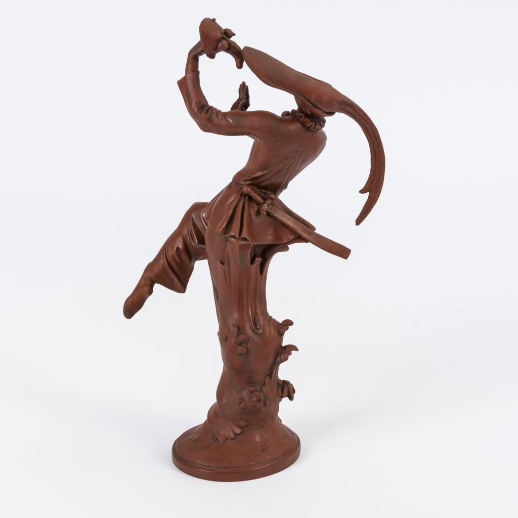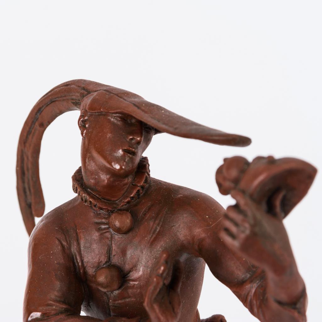 Schreitender Tänzer, eine Maske in der linken Hand betrachtend, nach einer Figur aus E. T. A. Hoffmanns Erzählungen und einem Stich von Jacques Callot (1592-1735).