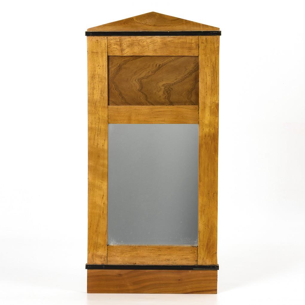 Cherry and walnut veneered, partly ebonized. Approx. 62,5 x 29 cm, mirror size: approx. 27,3 x 20 cm.