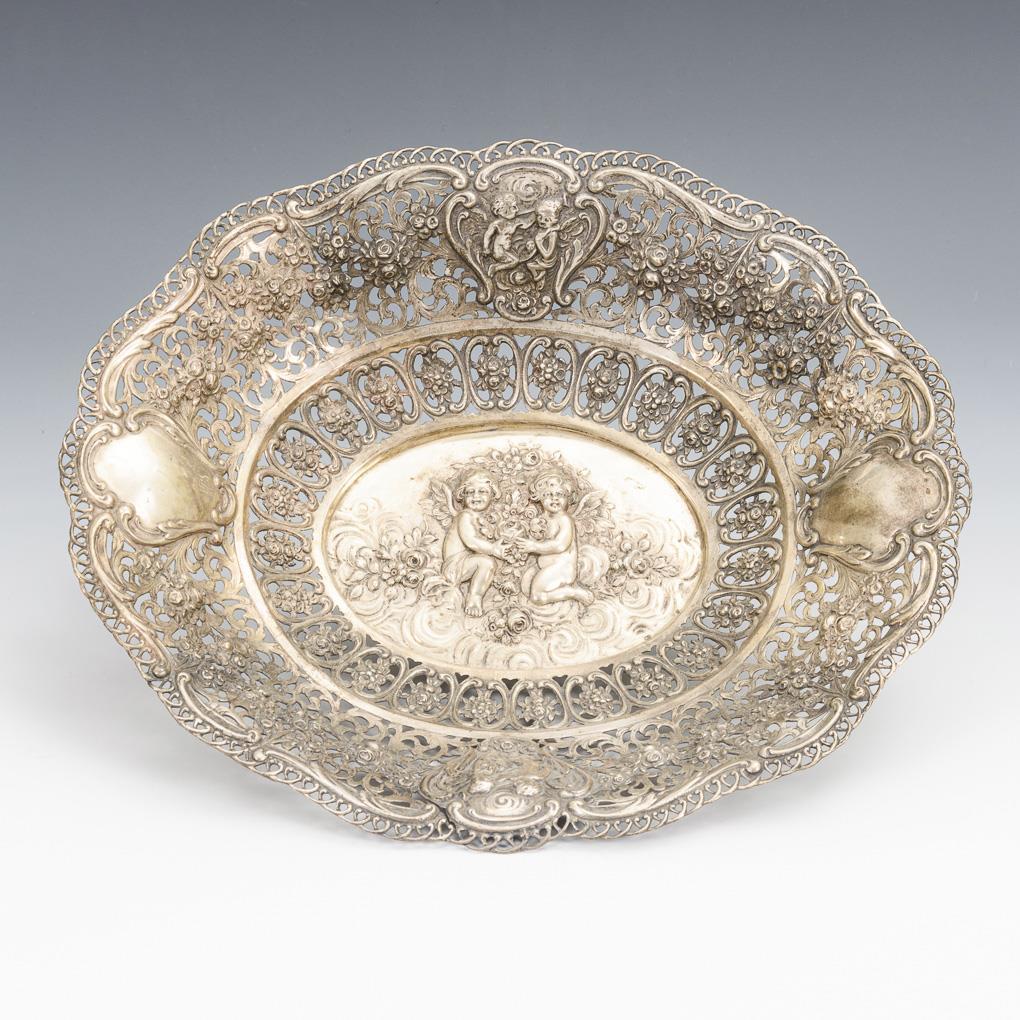 Rich relief openwork bowl with putti and flowers. Rim with small defects and 1 crack.