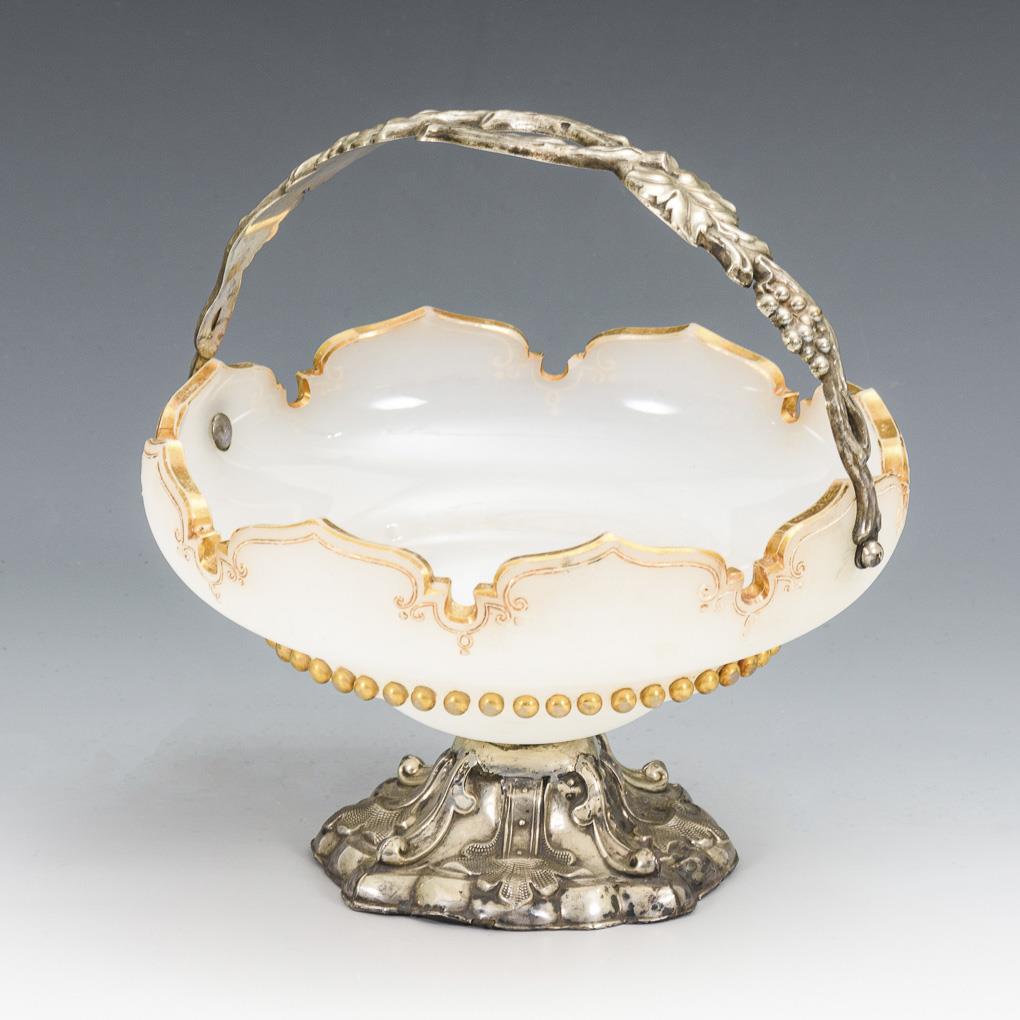 glass, silver-plated metal. H 18 cm (with handle), Ø 17,5 cm.