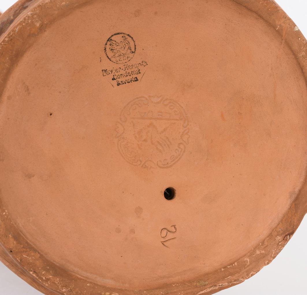 Five-flame Art Nouveau chandelier with putto. Binder ceramics, Landshut Bavaria.