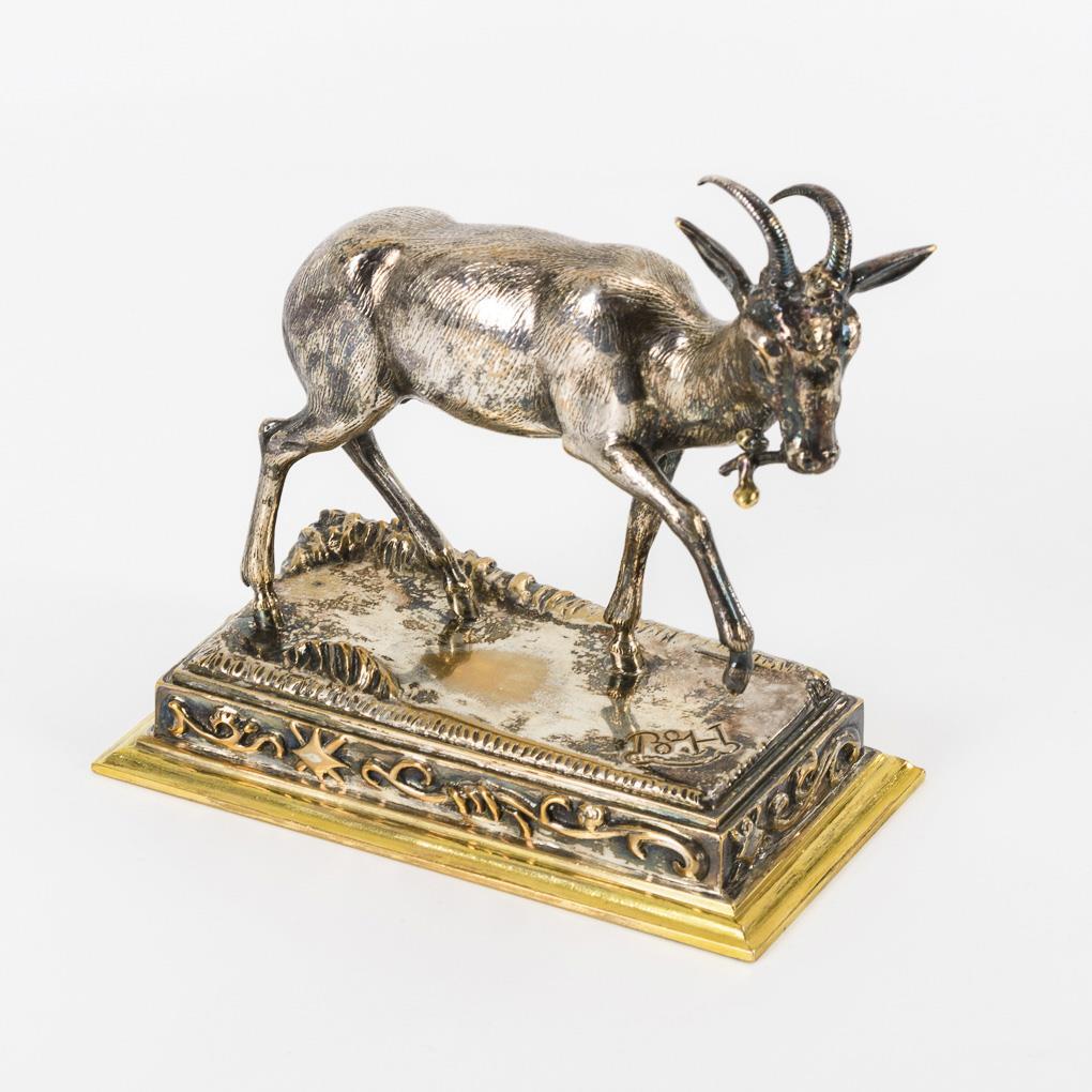 Stepping billy goat with branch in the Äser. Partly rubbed, 1 horn slightly bent.